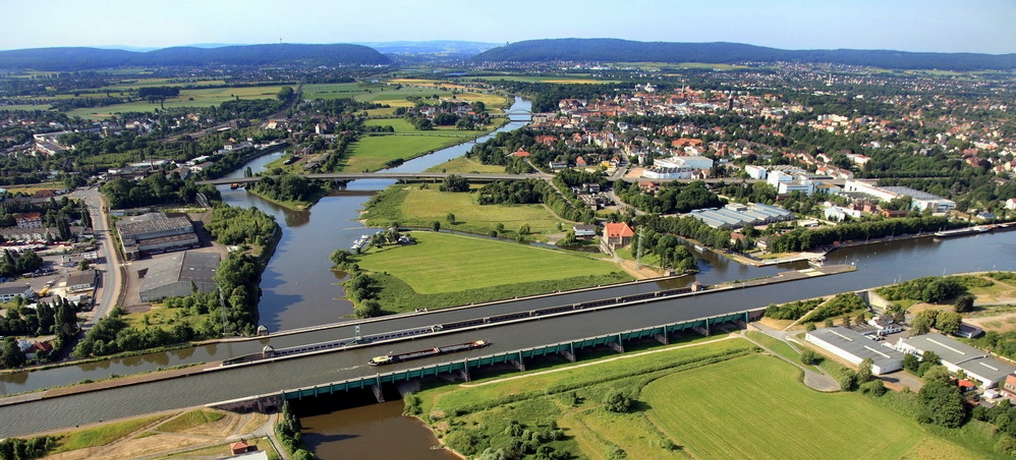 Ein Kreuz ganz besonderer Art gibt es außerdem in Minden zu erleben. Das Wasserstraßenkreuz, das größte Doppelwasserstraßenkreuz der Welt. Hier quert der Mittellandkanal den Fluss Weser. Ein bautechnisches Meist